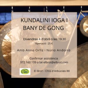 T’oferim un doble esdeveniment una meditació Kundalini, que és una eina per establir una relació alineada entre el cos, la ment i l’ànima, acompanyat d’un bany de gong, aquest crea música que és escoltada per l’ànima.